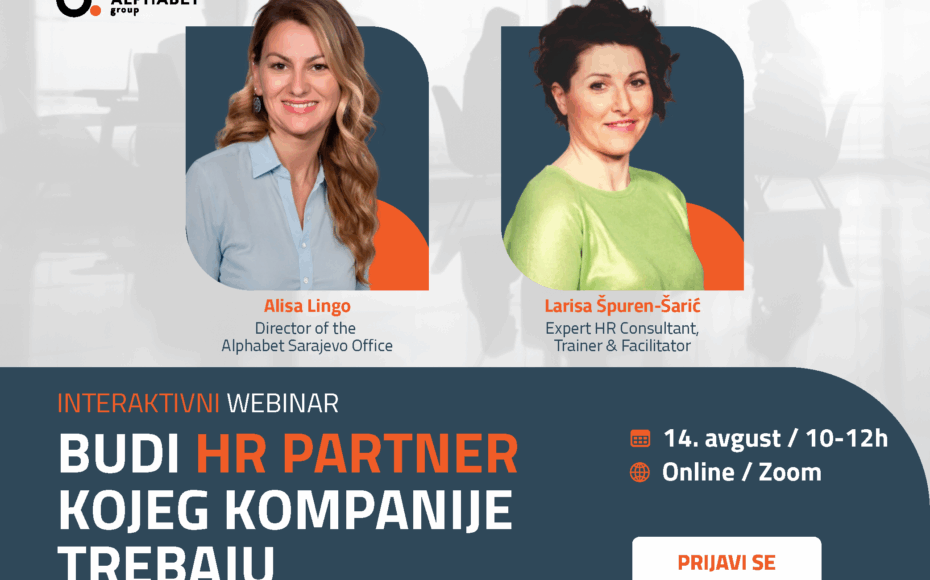 Interaktivni webinar: Budi HR partner kojeg kompanije trebaju Zbog izuzetnog interesovanja i velikog broja upita nakon prvog termina, Alphabet Group ponovo organizuje interaktivni webinar „Budi HR partner kojeg kompanije trebaju“…
